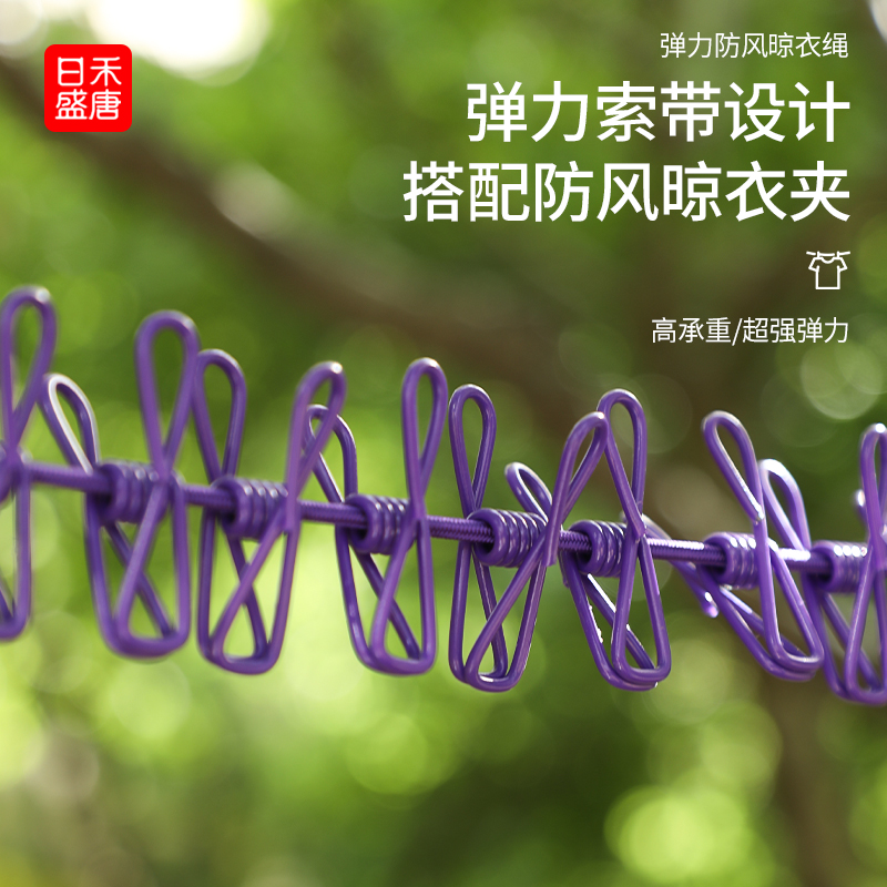 家用晾衣夾彈力便攜防風防滑曬衣繩家用陽臺曬衣桿帶夾子晾衣服繩