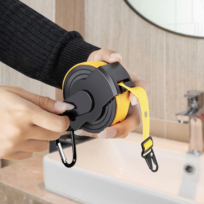戶外便攜手搖晾衣繩露營旅行出差酒店防滑可伸縮免打孔隱形曬衣繩