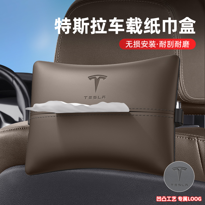 適用特斯拉車載紙巾盒modely煥新版model3抽紙盒座椅掛式車內用品