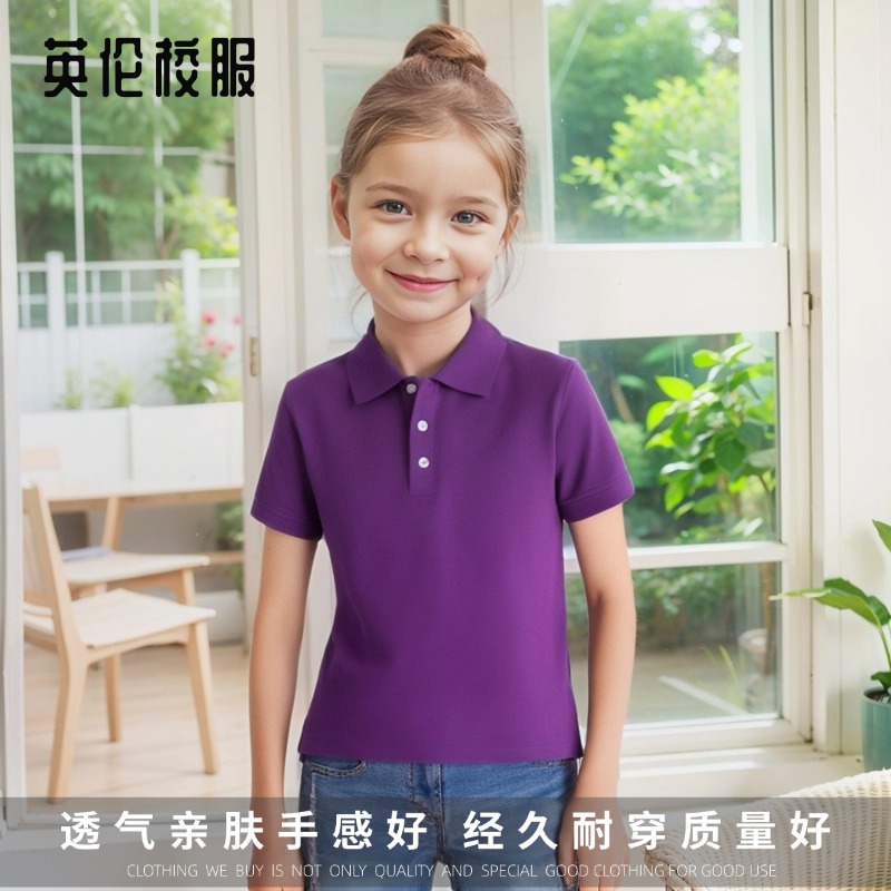 學院英倫風學生清華紫校服 中小學夏季短袖透氣舒適T恤polo衫