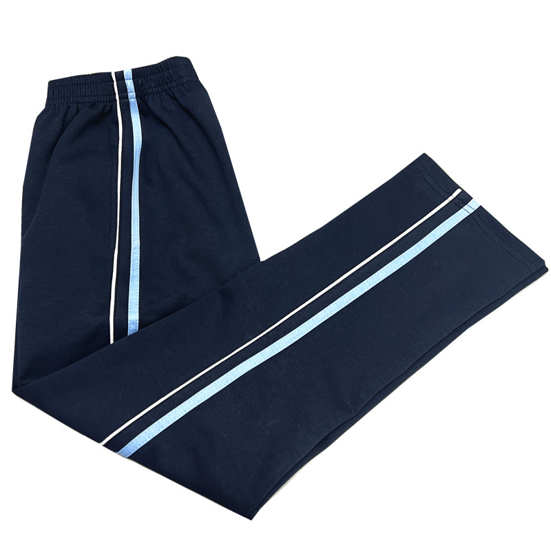 定制全棉春夏秋薄款淺灰鑲反光條寶藍男女學生中性校服褲運動褲