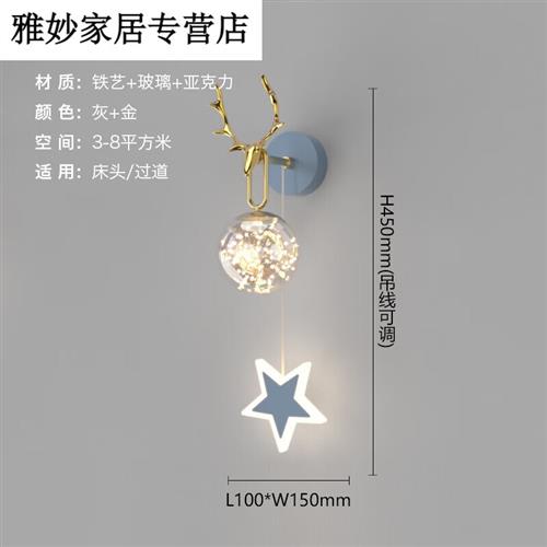 床頭壁燈輕奢鹿角臥室客廳背景墻創意浪漫is溫馨 星款灰金色【45C