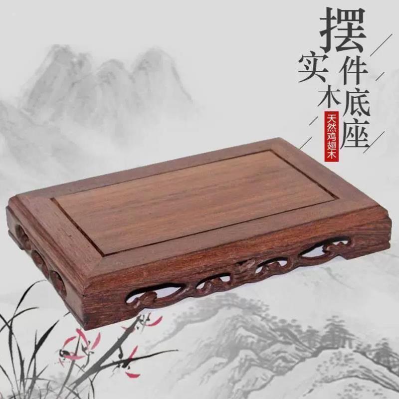 創意鏤空魚缸長方形石頭藝術小木桌擺件底座坐臺佛座木頭臥室擺臺