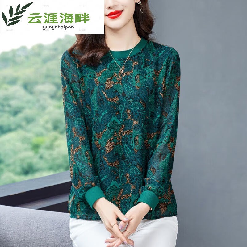 新款秋季中年媽媽裝洋氣雪紡小衫長袖早秋女上衣減齡氣質秋裝t恤