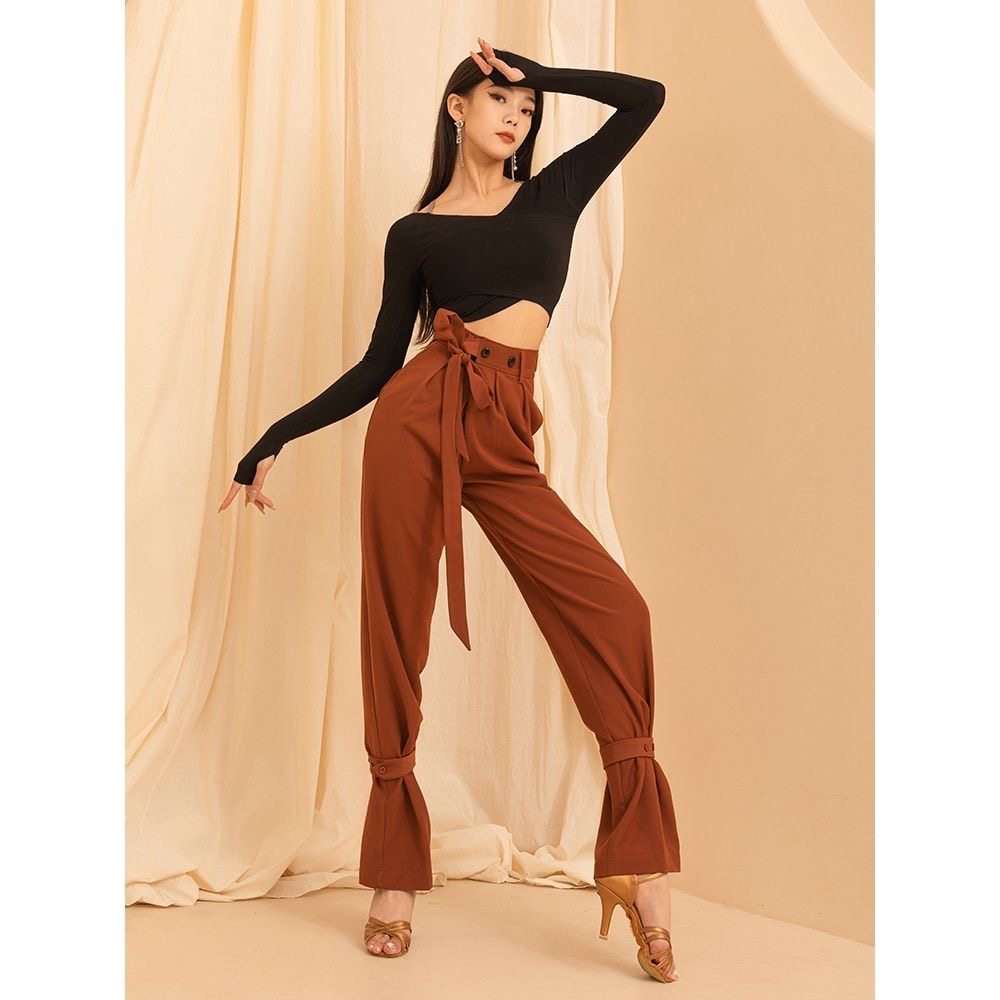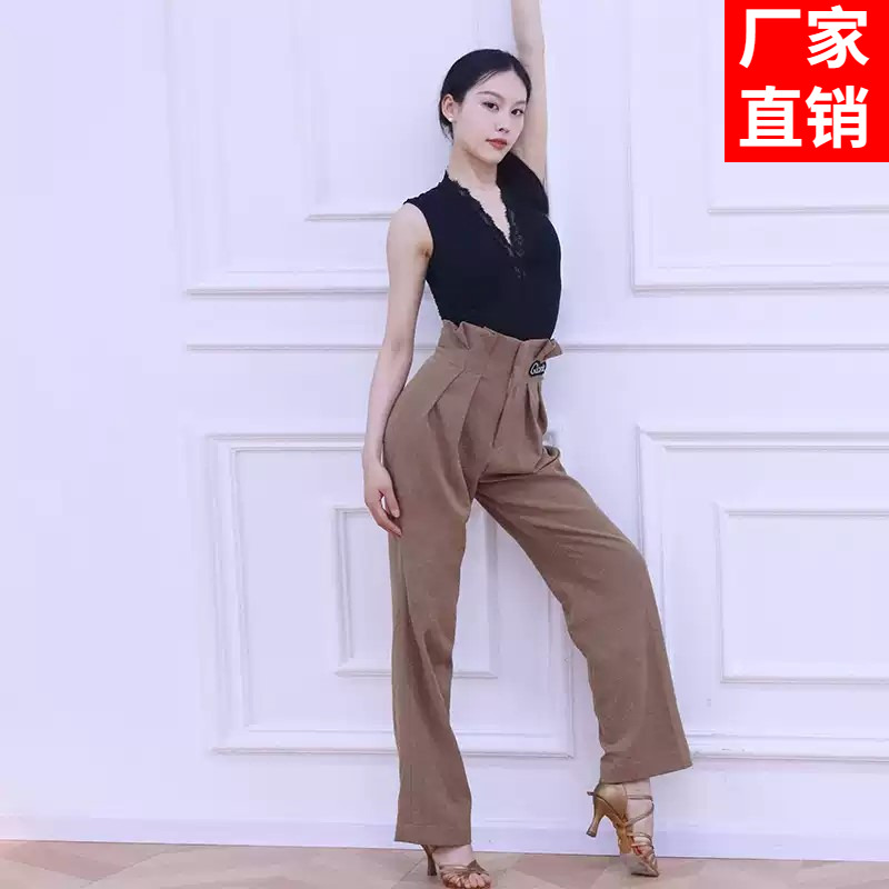 皇締 摩登舞新款褲子高腰直筒褲交誼舞下裝吉特巴長褲表演舞蹈服