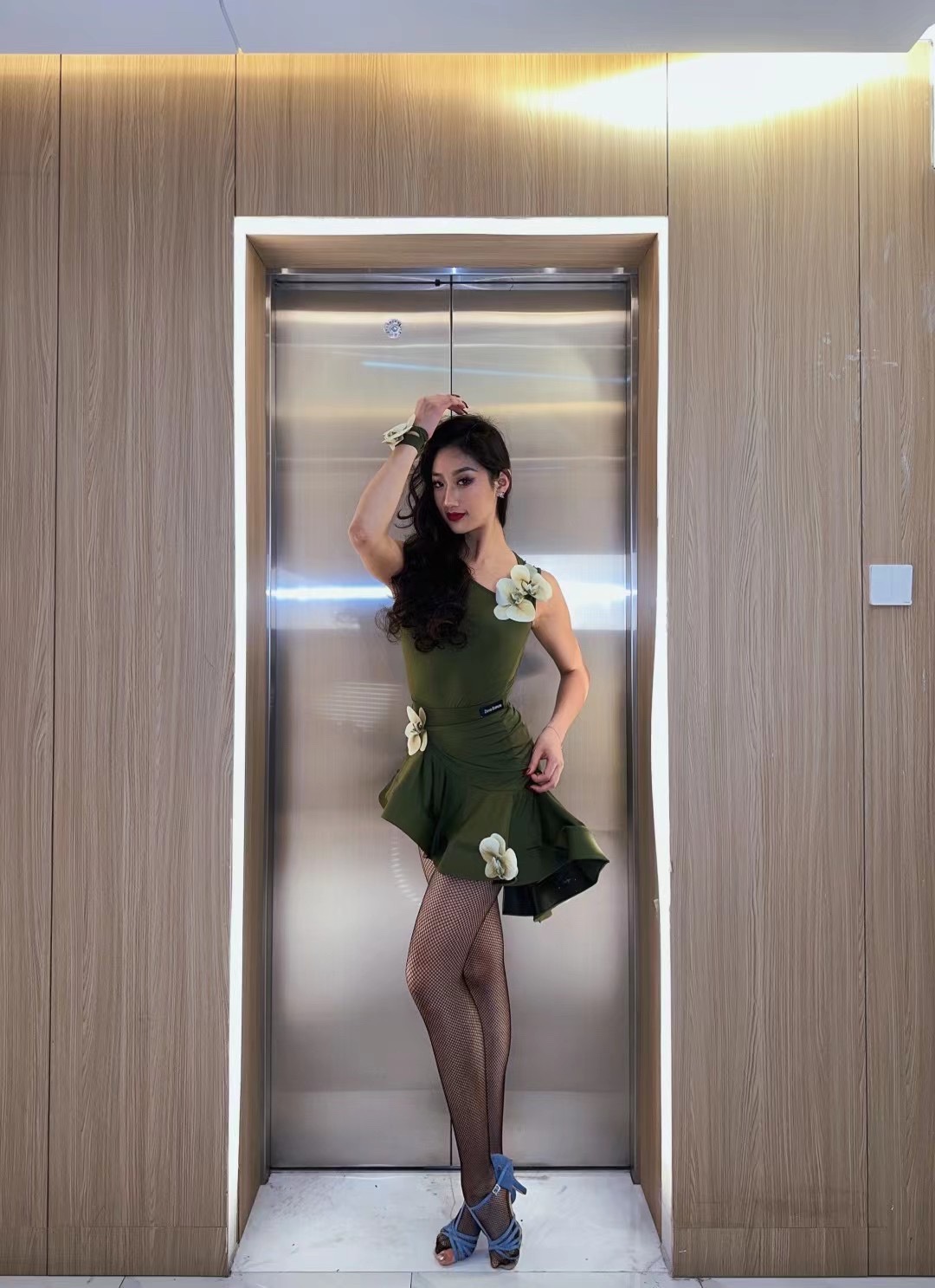 Zero拉丁舞女士夏季花朵衣服大裙擺超美練習服綠色藍色恰恰演出