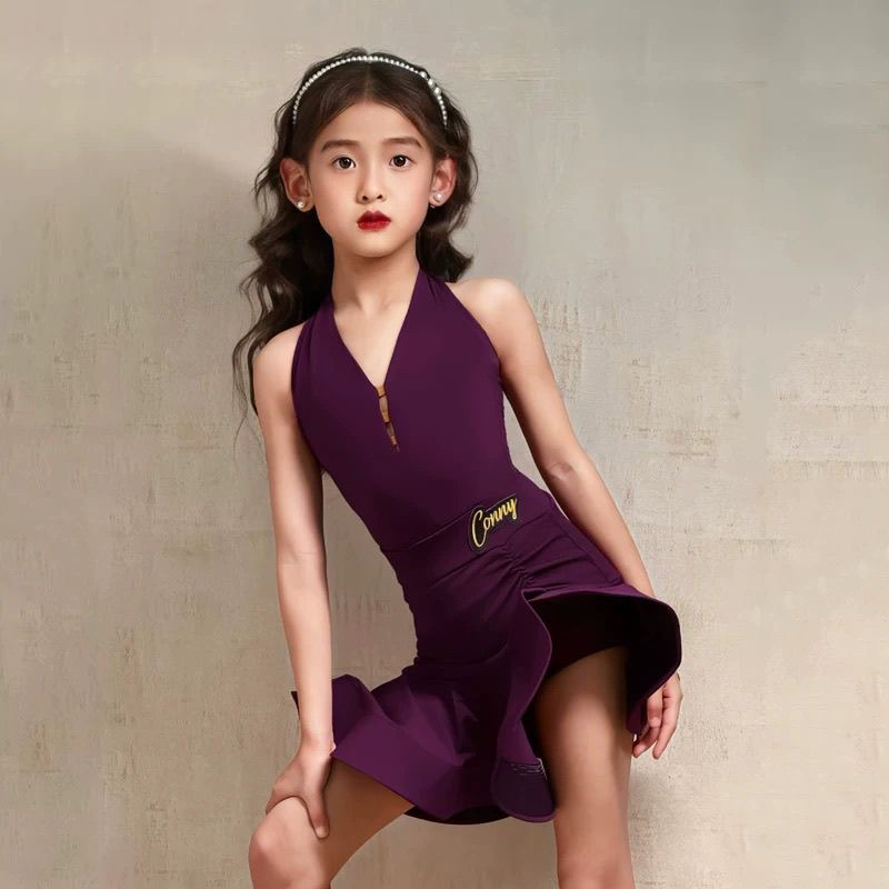 CONNY拉丁舞服掛脖氣質新款女跳舞蹈練功服兒童演出表演裙子套裝