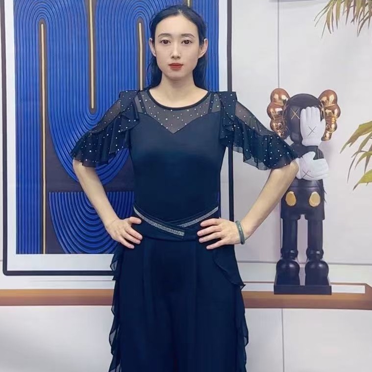 箐箐佳美新款2025摩登舞冰絲彈力連體上衣華爾茲交誼舞練功演出服