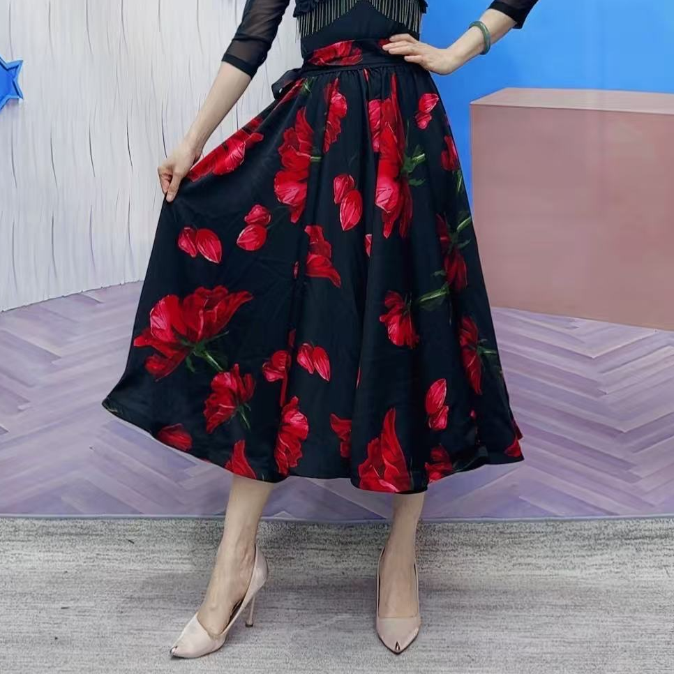 扉姿摩登舞裙專業交誼舞跳舞包臀華爾茲半身裙花朵國標舞半裙2125