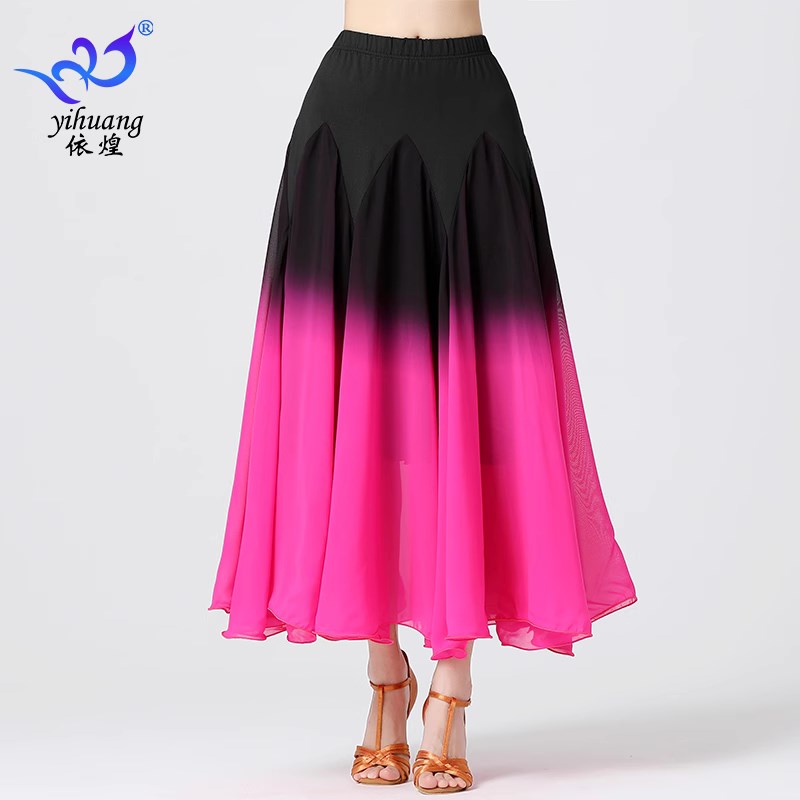 速發交誼舞大擺裙練習服表演服舞蹈半身裙漸變色舞裙跳舞長裙摩登