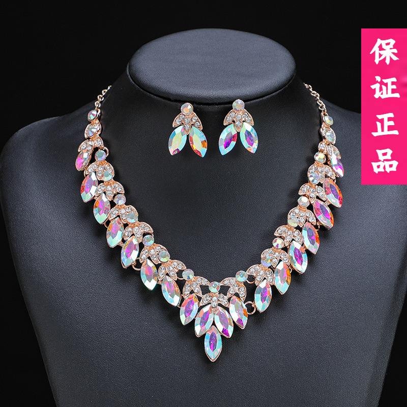 扉姿 摩登舞服表演幻彩項鏈耳環套裝交誼舞比賽配飾F035