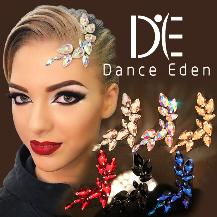 DanceEden頭飾復古拉丁摩登舞白AB彩鉆紅寶藍黑香檳金vintage