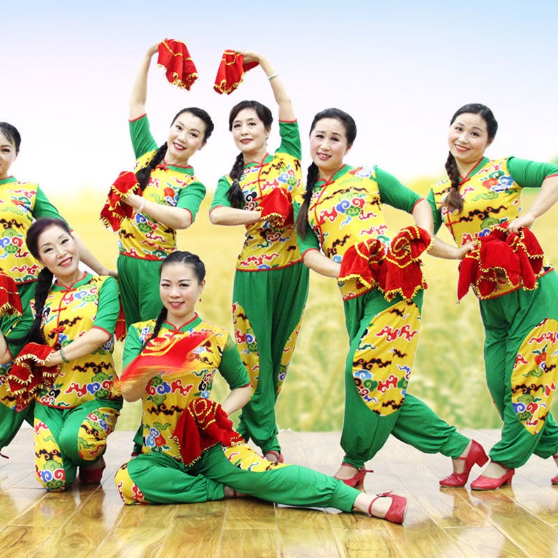網紅秧歌演出服裝新款p中老年舞蹈服裝民族廣場舞服裝云裳腰鼓手
