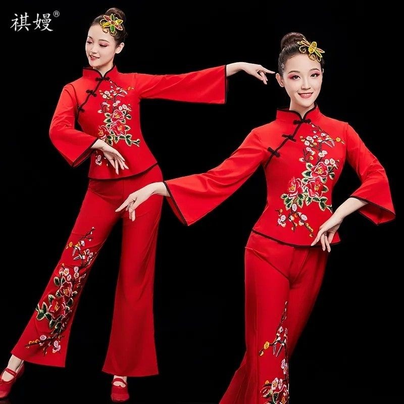 速發新款廣場舞演出服中老年扇子舞鼓舞秧歌舞蹈服中國風古典舞表