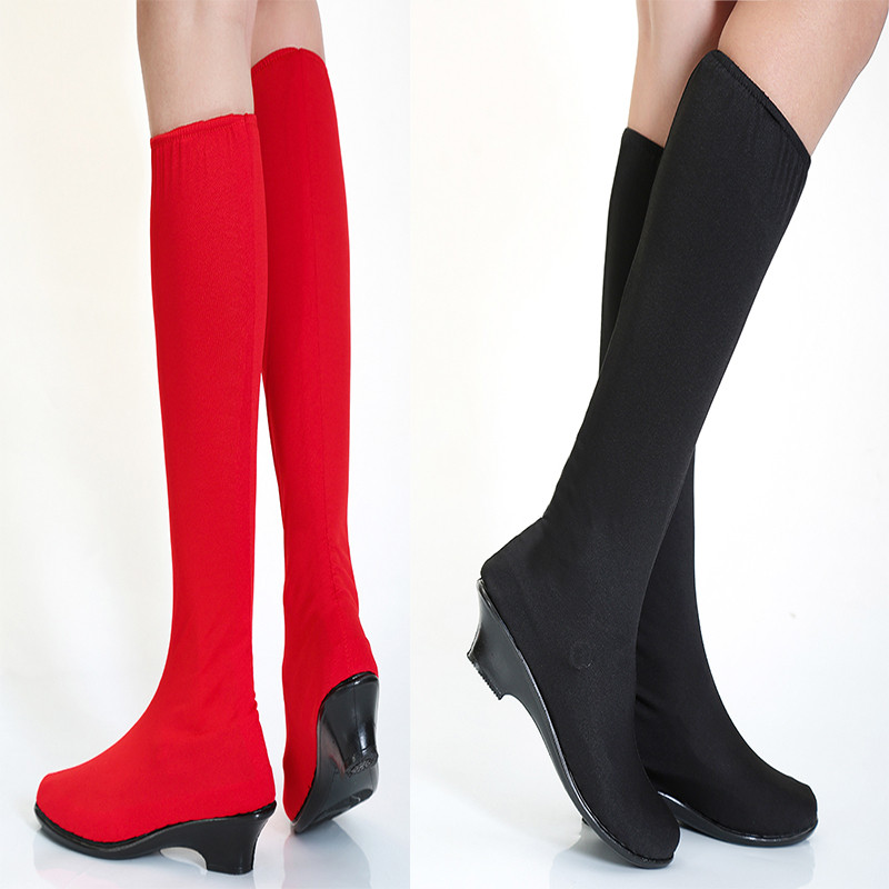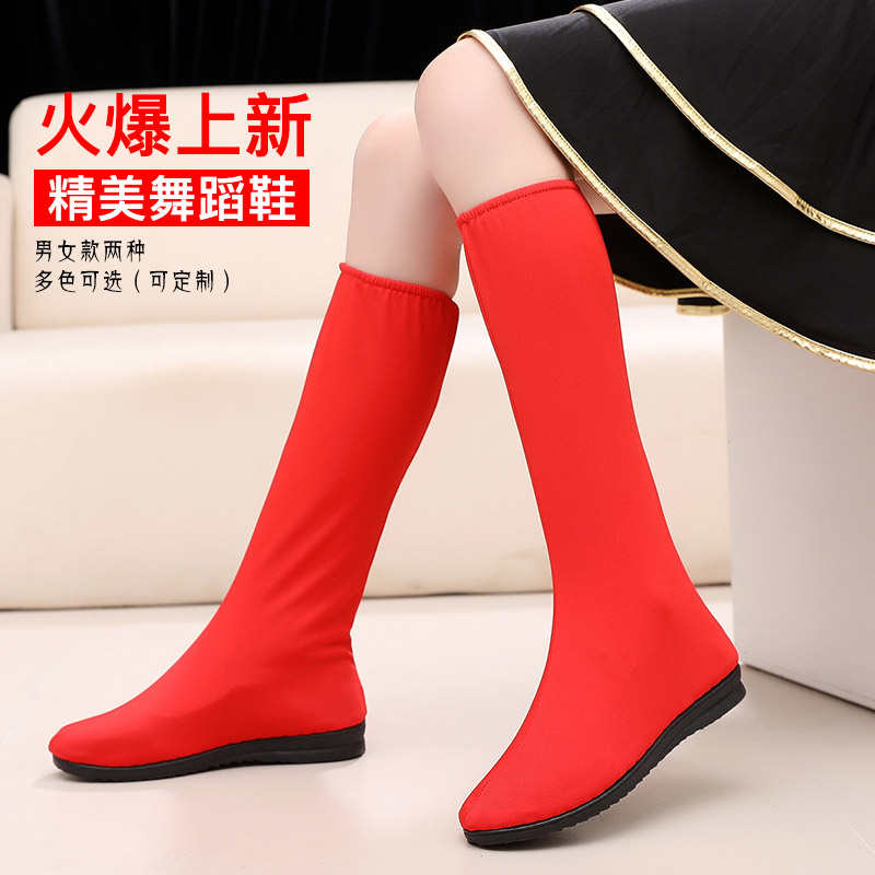男女成人民族蒙古藏族舞蹈鞋女兵高筒表演鞋彈力長筒古裝靴子紅色