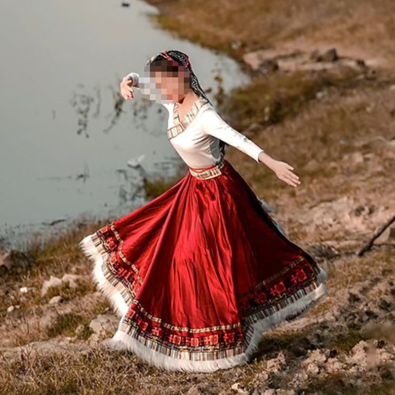 午后驕陽廣場舞迎酒歡歌藏族舞蹈服女藝考半身長裙民族舞藏式練習