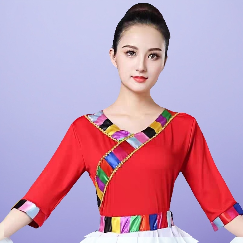 藏族舞蹈演出服裝女藏族廣場舞上衣女藏族藝考練功服上衣長袖中袖
