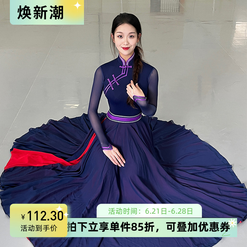 蒙族藏族舞蹈演出服裝女藝考練習長裙學生民族風大擺裙舞蹈表演裙