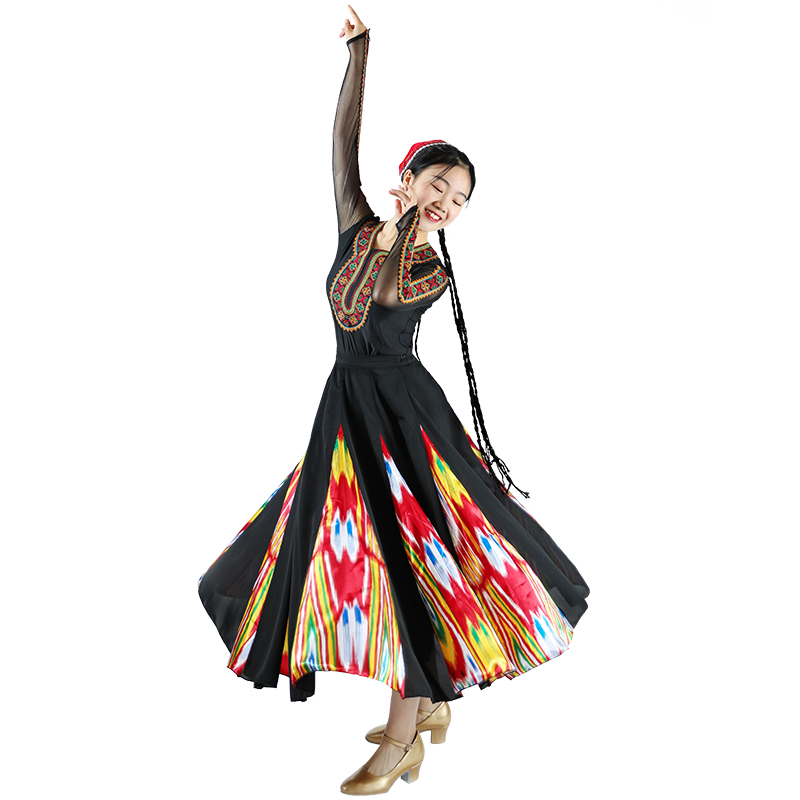 新疆舞蹈演出服裝女士大擺裙子藝考生練習裙維吾爾族舞舞臺表演裙