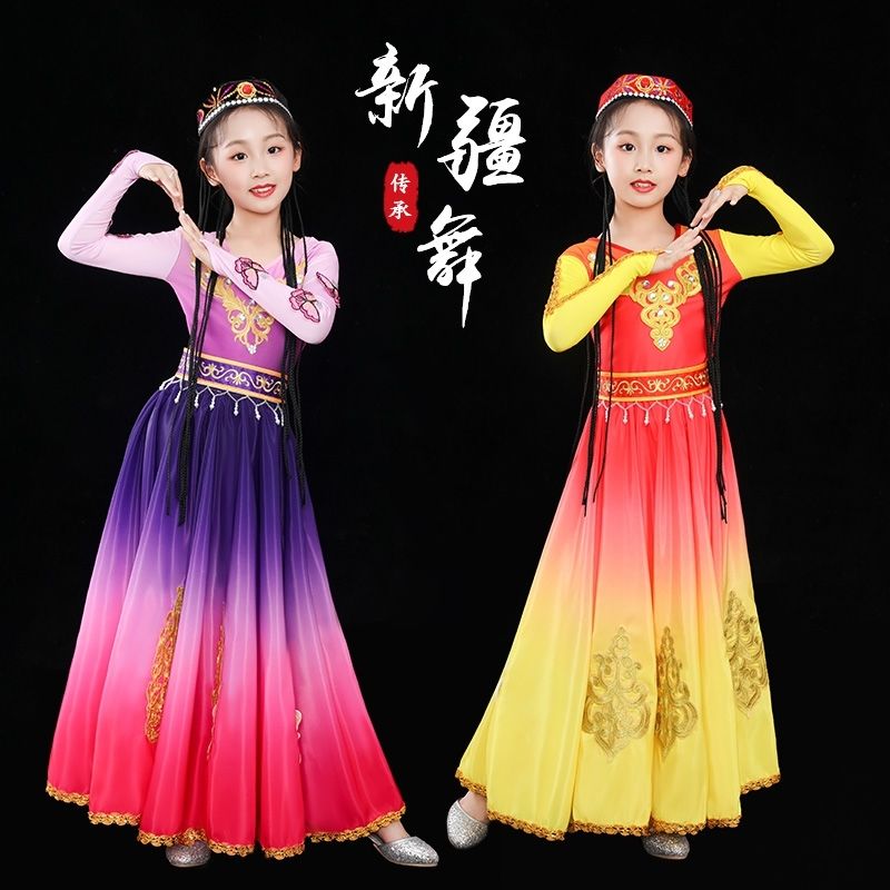 兒童新款新疆舞蹈演出服服裝女童民族少數民族維吾爾族維族大擺裙