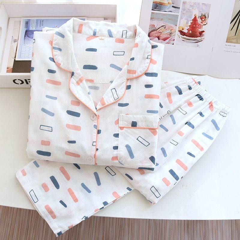情侶紗布睡衣春秋季男女士全棉日系大碼夏天薄款家居服套裝