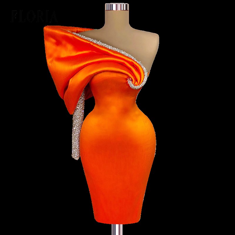 速發High Quality Off Shoulder Orange Mini Prom Gowns 2022 Pl