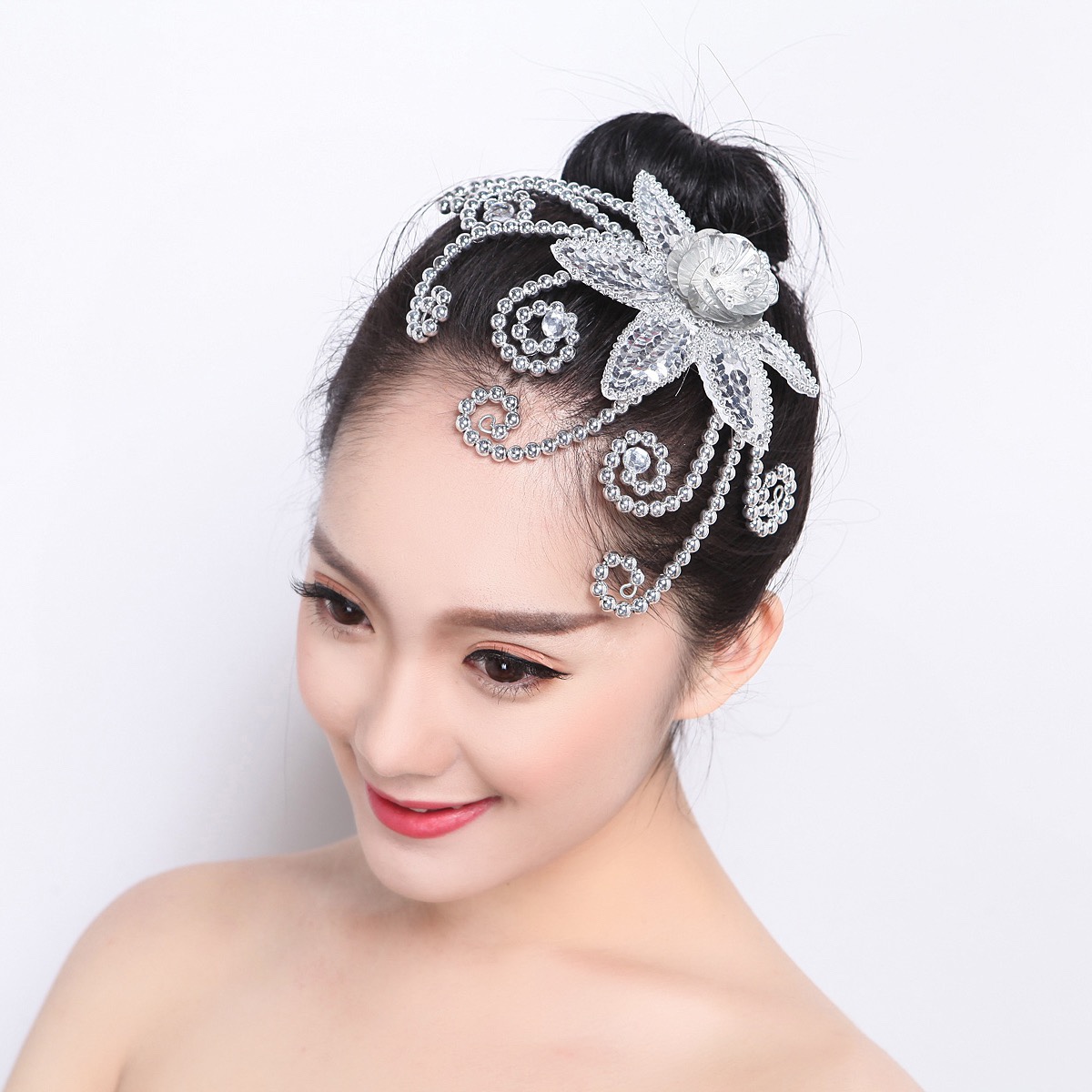 新款舞亮片頭飾現代舞秧歌舞開場舞表演頭花古典舞演出飾品舞蹈
