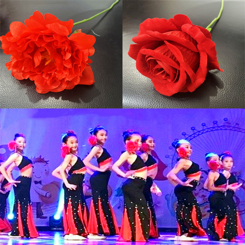 民族新疆舞手拿嘴咬牡丹花玫瑰手指花女兒花傣族舞蹈考級表演道具