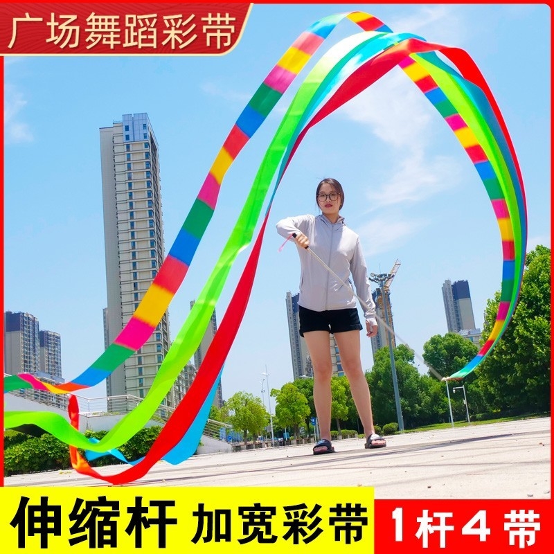 中老年健身彩帶舞不銹鋼伸縮桿廣場舞蹈飄帶成人6米舞龍耍龍絲帶