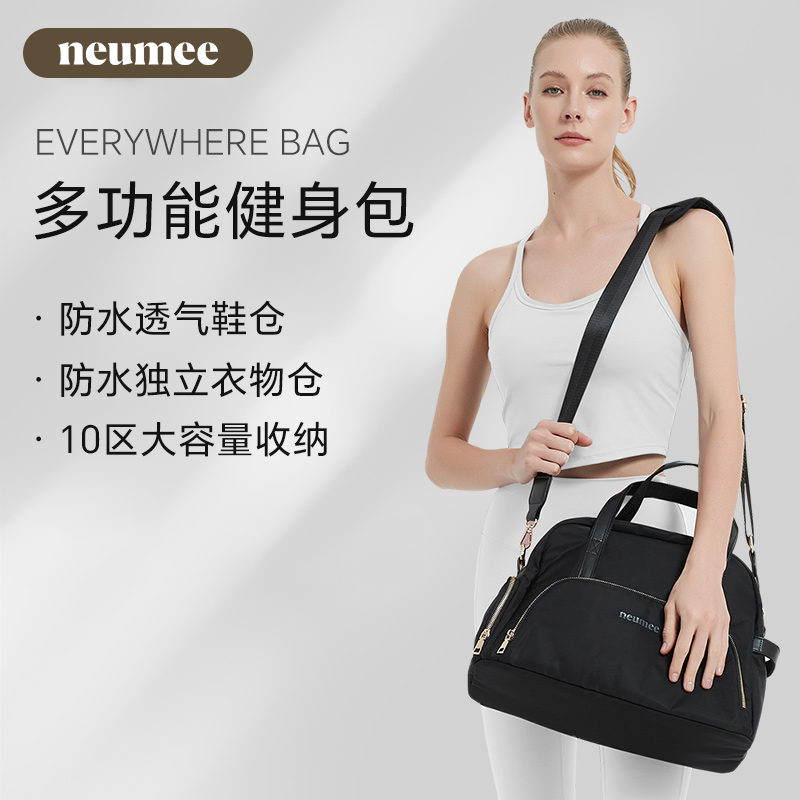 neumee多功能多口袋尼龍布干濕分離手提包大容量健身包防水托特包