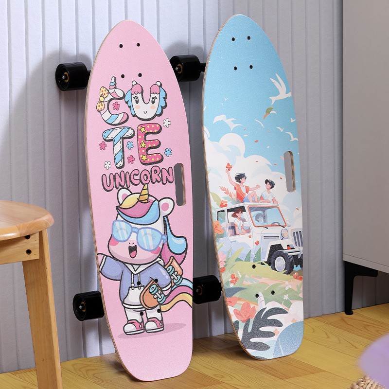 陸地沖浪板兒童滑板女生初學者陸沖板路沖板彈Q簧免蹬地刷街小魚
