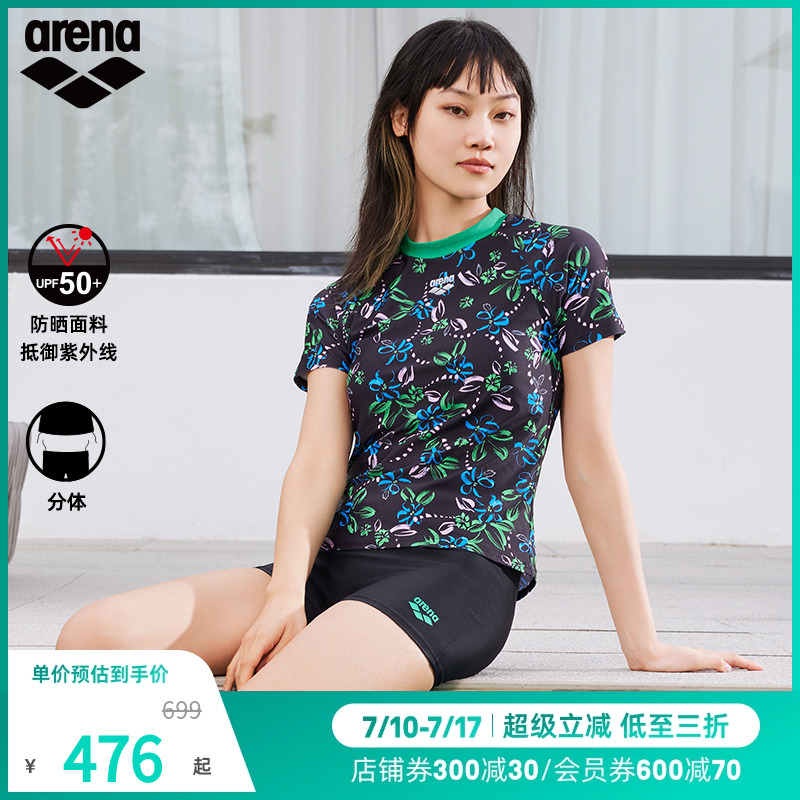 arena阿瑞娜花花世界系列女士短袖分體平角泳衣運動休閑泳衣女款