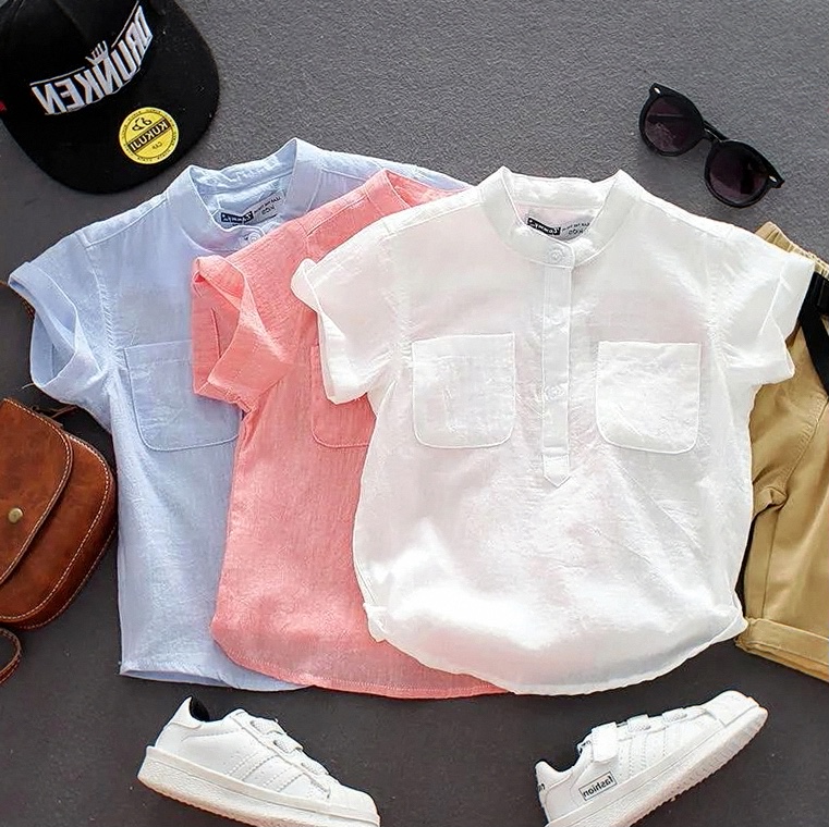 兒童純棉襯衫童男童棉麻襯衣衫男童夏裝男純棉襯兒童襯衣男薄款