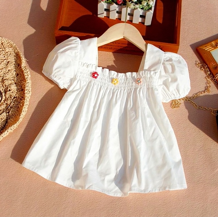 夏季2024新款女寶寶韓版洋女童娃娃衫氣甜美花邊領襯衣兒童短袖襯