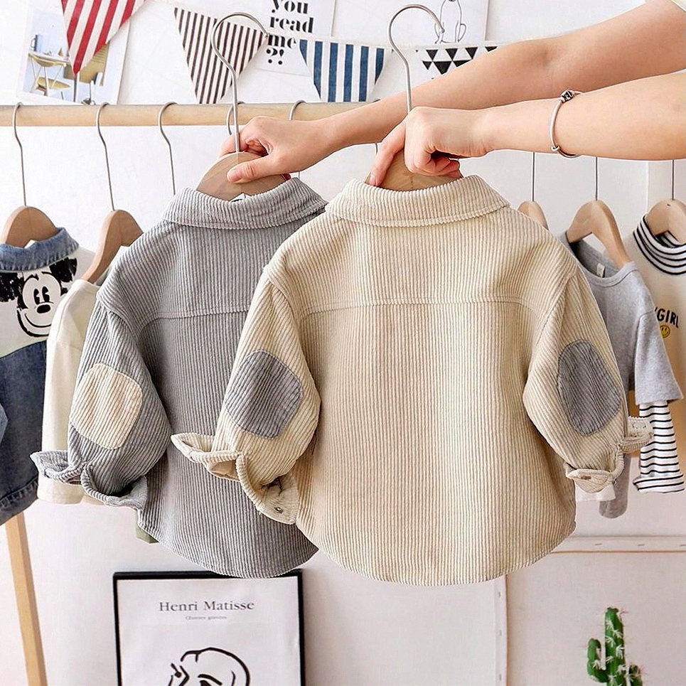 春秋款韓版彈力襯衫寶寶男童長袖時尚洋氣襯衫燈芯絨上衣撞色襯衫