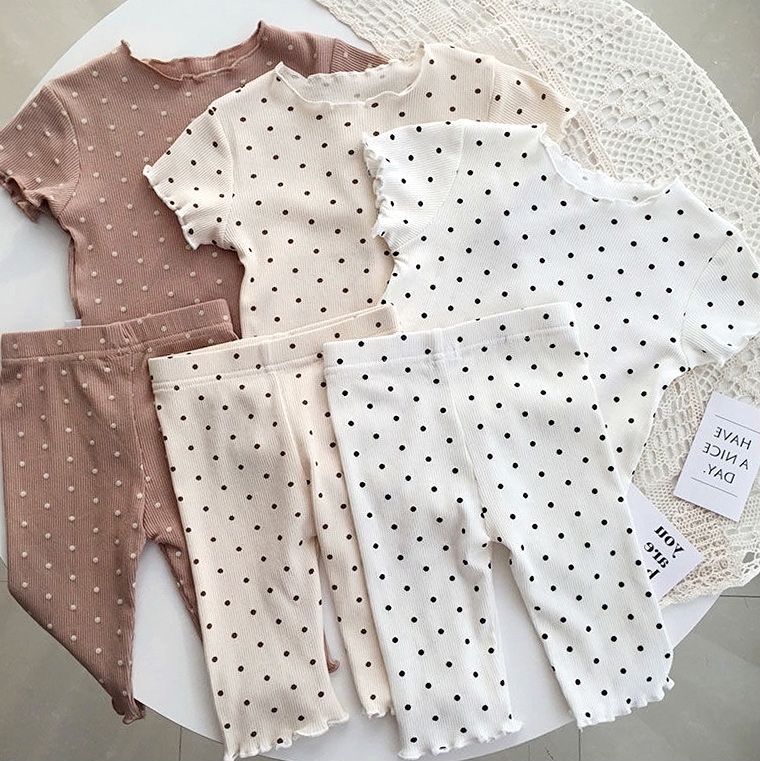 寶寶睡衣女童夏裝兩件套家居服夏季薄款套裝圓點洋氣小童空調服女
