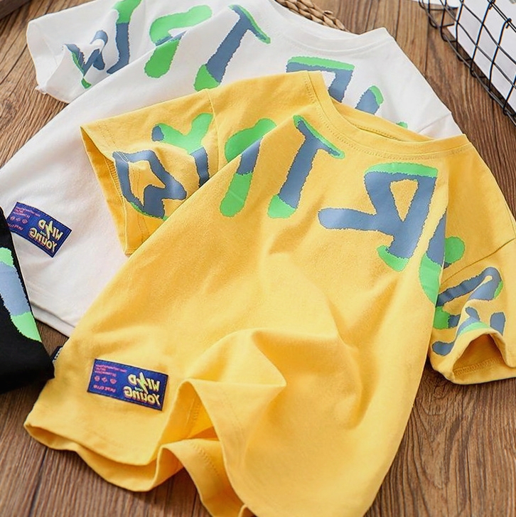 2022新款T恤夏季新款男童短袖中大童百搭字母印花上衣兒童裝T恤潮