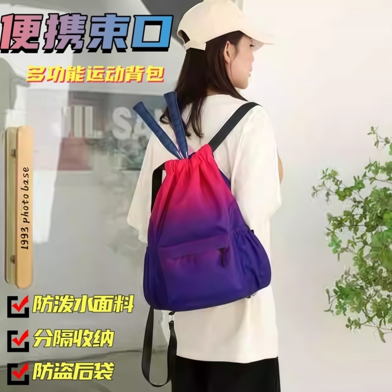 韓國新款羽毛球包抽繩雙肩包帆布大容量大學生書包爬山騎行網球包