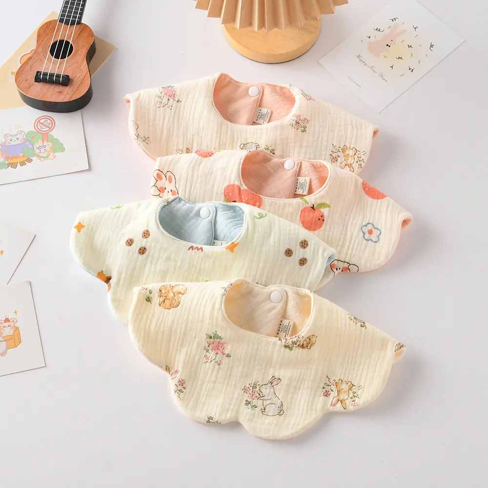 嬰兒口水巾純棉a類六層紗布可調節圍嘴防吐奶四季通用花瓣圍兜