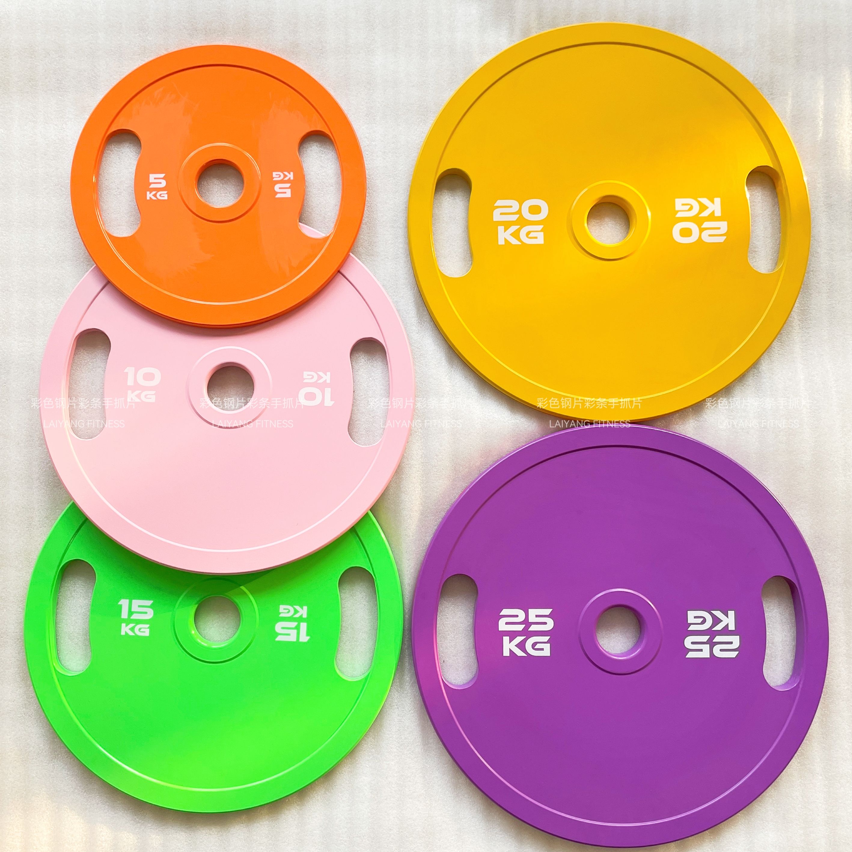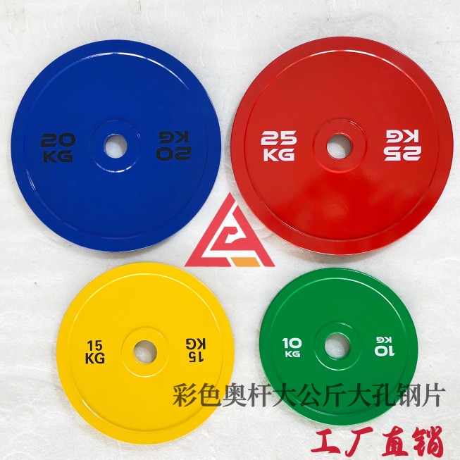 健身奧杠大孔杠鈴配重片臀推舉重比賽訓練彩色大鋼片10-50大公斤