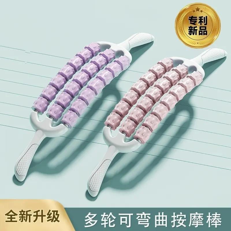 彎曲仿生狼牙棒瑜伽舒緩按摩感統訓練肌肉放松滾輪軸腿部按摩器ht