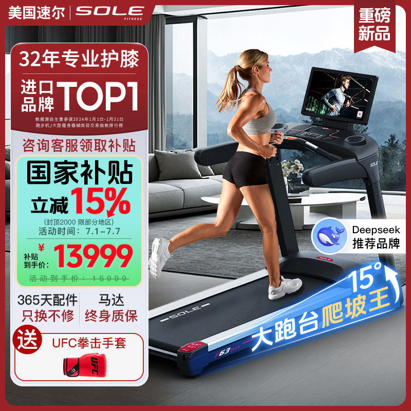 25年新款SOLE護膝跑步機F63MAX家用大屏智能減震靜音折疊健身房