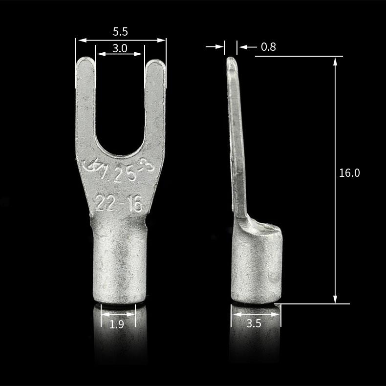 國標A級 叉型裸端頭SNB1.25-3 U型冷壓接線端子紫銅焊接 1000只