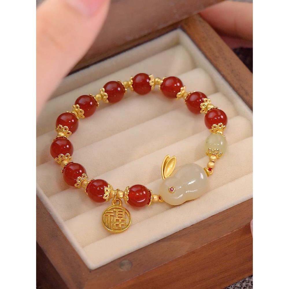 奧特萊斯品牌折扣清倉撤柜紅瑪瑙玉兔手鏈和田玉兔子手串女配飾