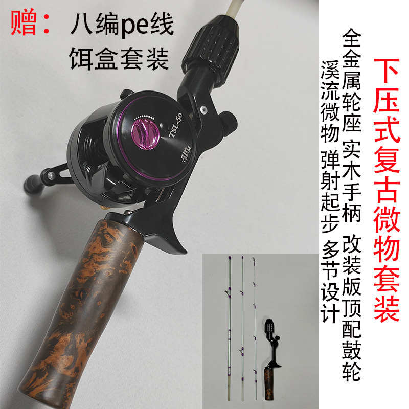 改裝版下沉式鼓輪微物套裝 馬口實木彈射套裝 全金屬輪座復古遠投