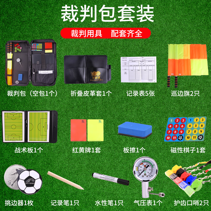 足球訓練裁判工具裝備包袋套裝足球裁判用品包袋比賽用裝備紅黃牌