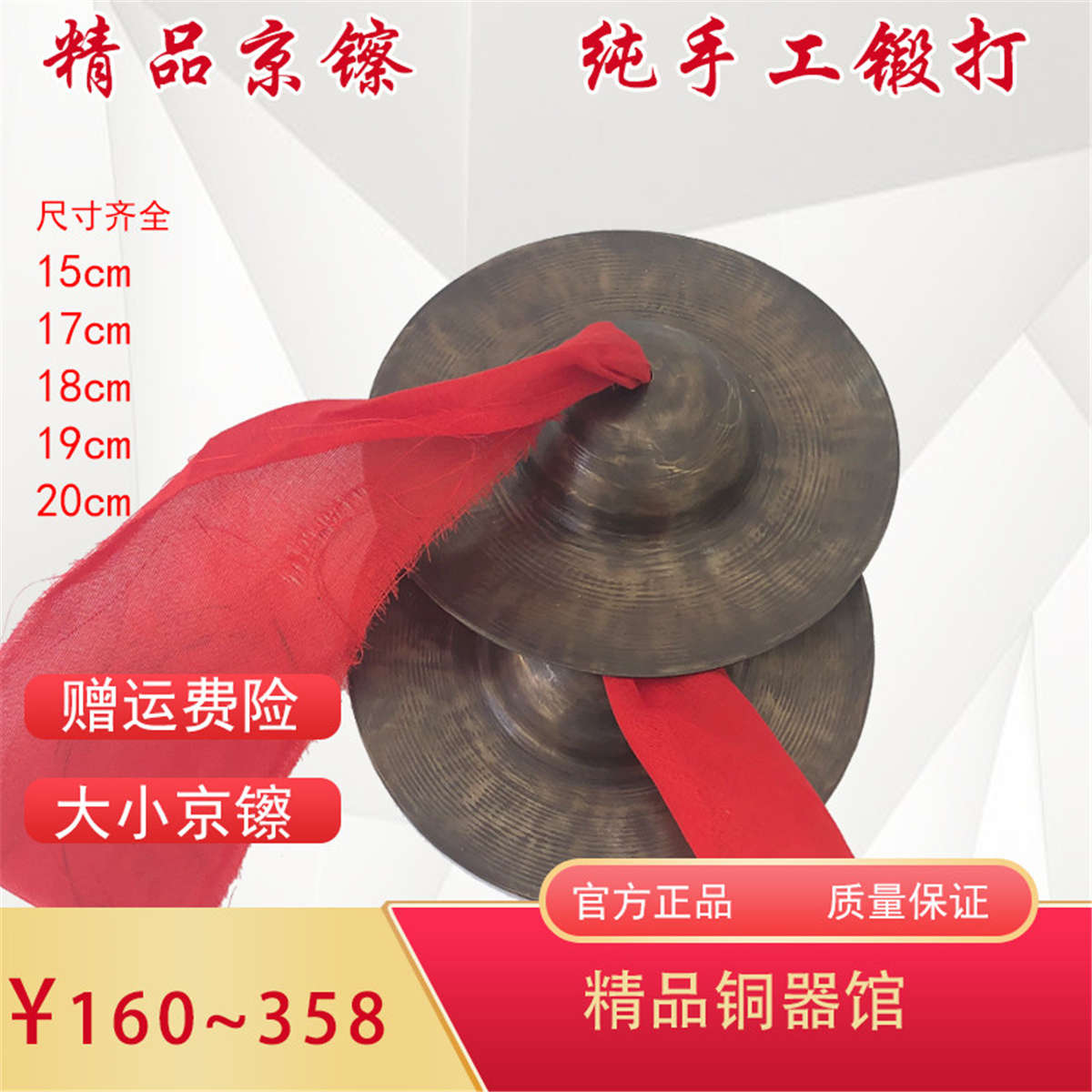 海鷗響銅镲京镲15 17厘米19大小京鈸鉿子京釵水镲廣鈸腰鼓镲小镲