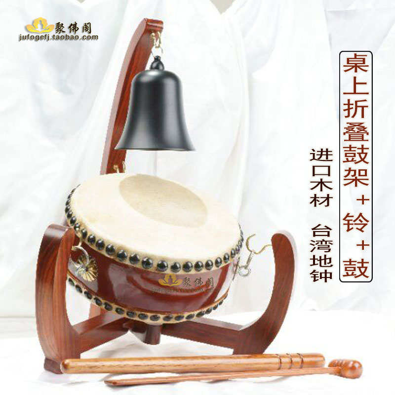 臺灣牛皮鼓寺院鈴鼓扁鼓地鐘法器實木折疊三角架法鼓懺鐘鼓中號鼓
