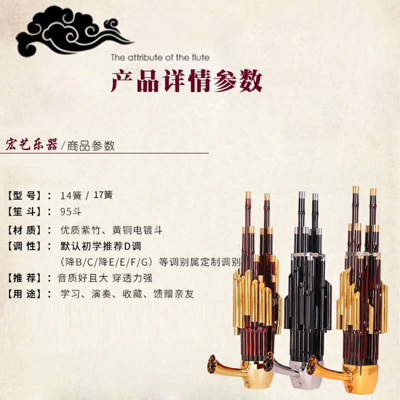 新藝 精致17簧傳統笙圓笙活斗笙樂器D調初學者笙 紫竹 廠家直銷