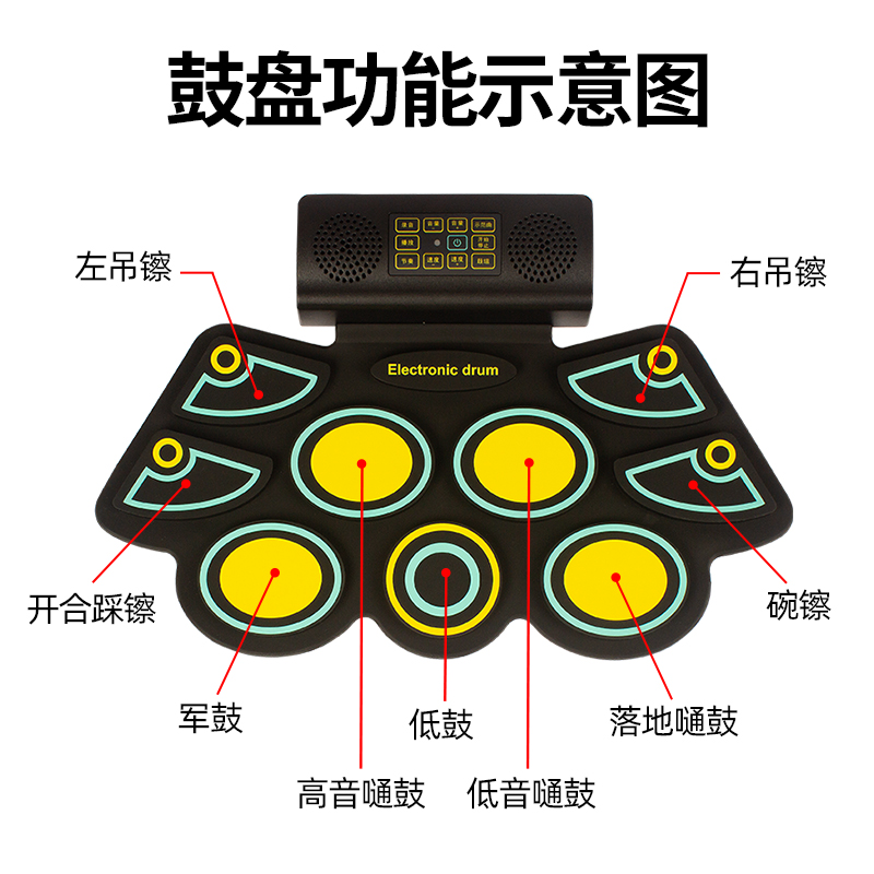 新型加大加厚鼓面手卷電子鼓架子鼓練手神器成人初學便攜打擊板